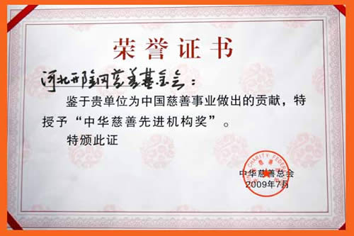 2009年7月,中華慈善總會授予邢鋼慈善基金會“中華慈善先進機構(gòu)獎”。