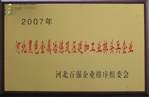 2007年12月,邢鋼獲“河北黑色金屬冶煉及壓延加工業(yè)排頭兵企業(yè)”榮譽(yù)稱號。
