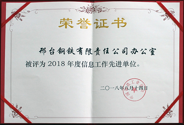 2018年10月22日,在上海舉辦的“2018年Mysteel中國工業(yè)線材暨緊固件產(chǎn)業(yè)鏈高峰論壇”上,論壇評(píng)委會(huì)根據(jù)對(duì)國內(nèi)工業(yè)線材生產(chǎn)鋼廠2017-2018年品牌、質(zhì)量和市場反饋等評(píng)比,評(píng)選出“中國工業(yè)線材行業(yè)鋼廠領(lǐng)導(dǎo)品牌”,邢鋼獲此殊榮。