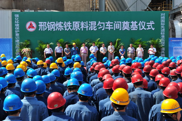 6月9日上午,邢鋼在煉鐵廠原料混勻車間舉行了全封閉式料場(chǎng)奠基儀式。混勻料場(chǎng)全封閉工程是邢鋼2015年實(shí)施的14項(xiàng)環(huán)境深度美化治理重點(diǎn)項(xiàng)目之一,邢鋼還將進(jìn)一步實(shí)施噴吹煤全封閉料倉(cāng)、無(wú)組織揚(yáng)塵面源封閉、廠容廠貌深度治理等一系列環(huán)保項(xiàng)目。