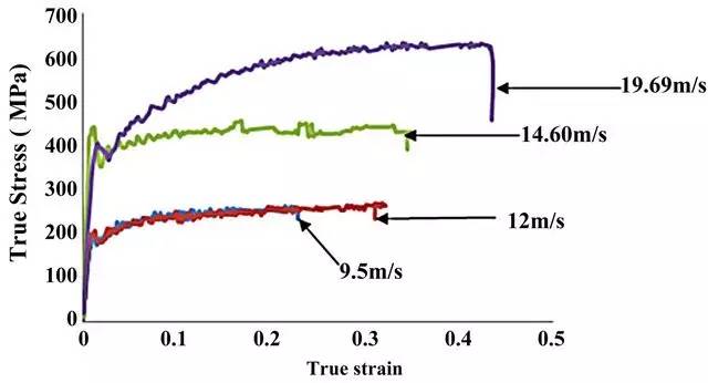 最后,談一下應(yīng)變速率。通常測試的金屬材料的拉伸曲線都是在較低的應(yīng)變速率下測得。只有一些特殊金屬構(gòu)件才需要在較高應(yīng)變速率下測試其力學(xué)性能,即發(fā)生高速形變的構(gòu)件。正常室溫條件下應(yīng)變速率拉伸,材料的變形主要以位錯(cuò)的滑移或?qū)\生為主。