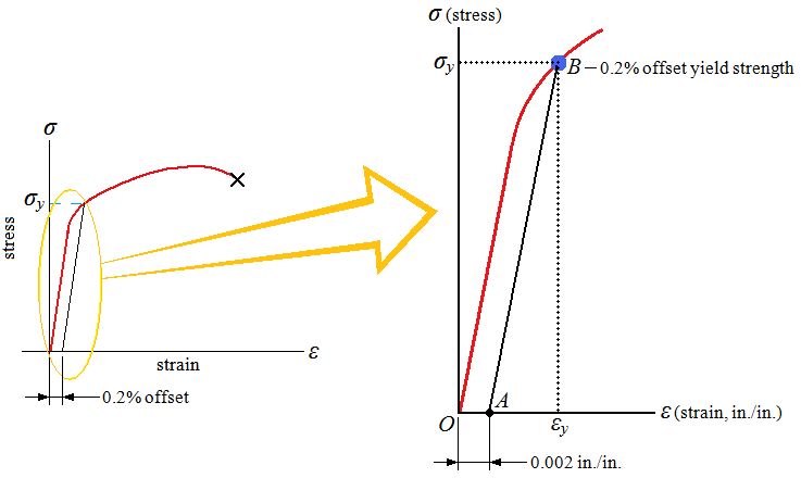 常用的金屬一般為多晶體金屬,因此工程實(shí)際金屬起始塑性變形具有非同時(shí)性特征。在拉伸曲線上具體反映就是沒有明顯的屈服點(diǎn)。那么,如何界定工程實(shí)際金屬發(fā)生了塑性變形呢?殘留塑性變形量就成為重要的依據(jù),人們通常人為地把一定殘留塑性變形量時(shí)工程金屬對應(yīng)的抗力作為屈服強(qiáng)度,也稱為條件屈服強(qiáng)度。這很好理解,沒有明顯的塑性屈服點(diǎn),就沒有明顯的屈服強(qiáng)度,要想知道實(shí)際金屬的屈服強(qiáng)度就需要一個(gè)判定條件,因此就有了條件屈服強(qiáng)度。對于不同的金屬構(gòu)件,其條件屈服強(qiáng)度對應(yīng)的殘留變形量不同。對于一些苛刻的金屬構(gòu)件,其殘留變形量規(guī)定應(yīng)較小,而普通金屬構(gòu)件條件屈服時(shí)對應(yīng)的殘留變形量則較大。常用的殘留變形量為0.01%,0.05%, 0.1%,0.2%,0.5%和1.0%等。