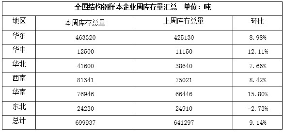 5、華北市場:節(jié)日期間華北市場結(jié)構(gòu)鋼價(jià)格大體穩(wěn)定,成交差,現(xiàn)45#碳結(jié)鋼鋼廠直發(fā)主流報(bào)價(jià):山東魯麗3870-3900元/噸、榮鋼4030元/噸、宣鋼4050元/噸、凌鋼4060-4080元/噸。據(jù)市場方面消息,節(jié)日期間華北地區(qū)結(jié)構(gòu)鋼市場銷貨不佳,庫存大幅積壓,價(jià)格反彈壓力較大,節(jié)后下游需求變化仍有待觀察,商家情緒偏空。據(jù)統(tǒng)計(jì),節(jié)中華北地區(qū)結(jié)構(gòu)鋼市場標(biāo)本企業(yè)庫存累計(jì)2.32萬噸,較節(jié)前增加0.3萬噸,環(huán)比增加14.85%。