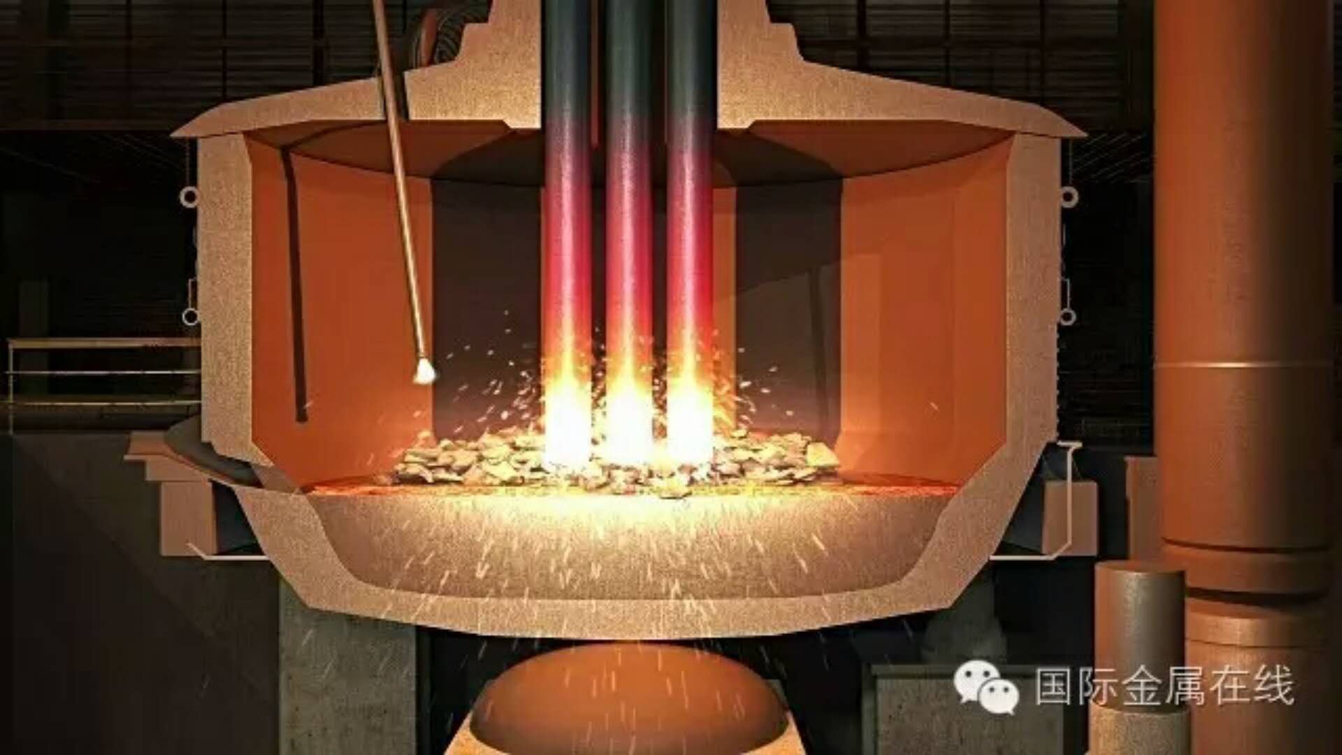 利用電弧熱效應熔煉金屬和其他物料的一種煉鋼方法。煉鋼用三相交流電弧爐是最常見的直接加熱電弧爐。煉鋼過程中,由于爐內無可燃氣體,可根據工藝要求,形成氧化性或還原性氣氛和條件,故可以用于冶煉優(yōu)質非合金鋼和合金鋼。