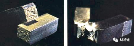 Titanic號鋼板(左圖)和近代船用鋼板(右圖)的沖擊試驗結果