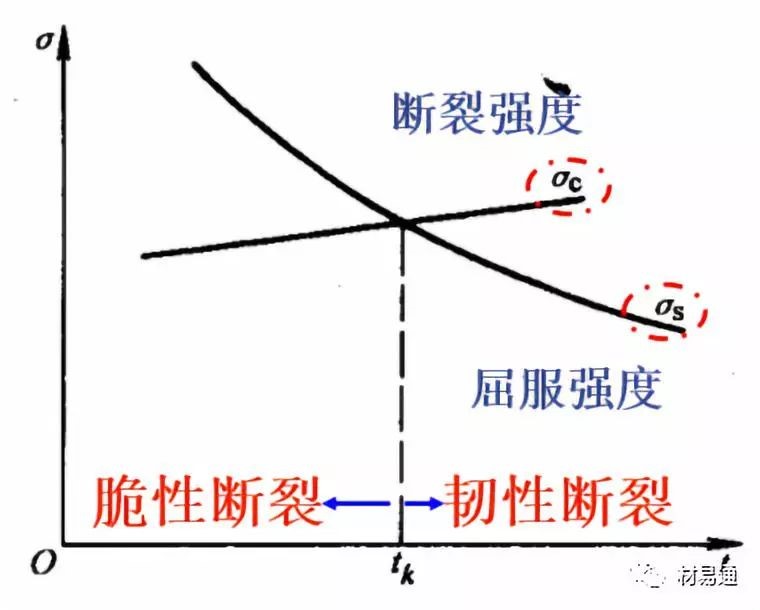 低溫脆性是材料屈服強度隨著溫度的降低急劇增加的結果;見右圖,屈服點隨著溫度的下降而升高,但材料的斷裂強度隨著溫度的變化很??;兩線交點對應的溫度就是tk。
