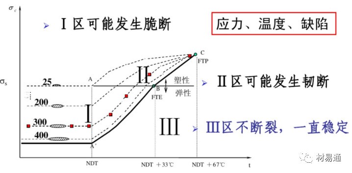 斷裂分析圖通過落錘試驗所得NDT可以建立斷裂分析圖Fracture Analysis Diagram,,表示許用應力、缺陷(裂紋)和溫度之間的關系曲線。
