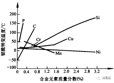 間隙溶質元素含量增加,高階能下降,韌脆轉變溫度tk提高;置換原子只有Ni、Mn降低tk;S、P、As等偏聚與晶界,降低材料韌性。