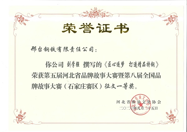 講好品牌故事,弘揚(yáng)邢鋼文化——邢鋼參加河北省品牌故事大賽創(chuàng)佳績(jī)