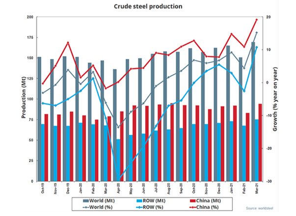 來源:世界鋼鐵協(xié)會 發(fā)布時間:2021年04月24日 點擊數:
