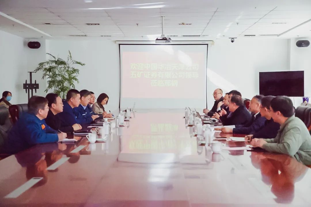 1月29日下午,中國華冶天津公司黨委書記兼總經(jīng)理高建峰、五礦證券有限公司實體經(jīng)濟部執(zhí)行總經(jīng)理馬晨光一行7人蒞臨邢鋼進行交流。公司領導張育明、劉宏偉、魏利剛、陳繼林熱情接待了來訪客人。