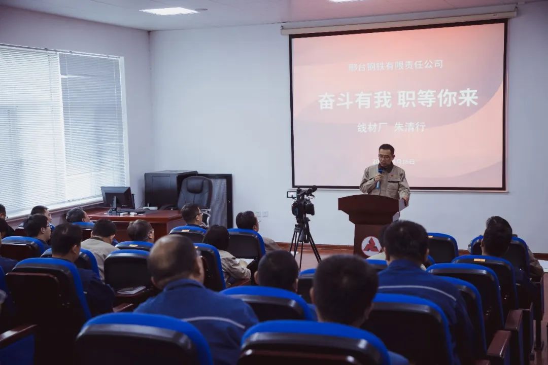 為加強(qiáng)員工隊(duì)伍建設(shè),提供人才晉升渠道,實(shí)施動(dòng)態(tài)儲(chǔ)備,4月16日,邢鋼組織開展了“奮斗有我,職等你來”主題演講會(huì),倡議廣大青年員工立足崗位比奉獻(xiàn),積極為公司發(fā)展諫言獻(xiàn)策,并激勵(lì)他們錘煉品德、勇于創(chuàng)新、實(shí)學(xué)實(shí)干,和公司一起成長(zhǎng),成為邢鋼事業(yè)發(fā)展的中堅(jiān)力量。公司董事長(zhǎng)兼黨委書記張育明等公司領(lǐng)導(dǎo)及各單位主管領(lǐng)導(dǎo)參與了本次活動(dòng)。