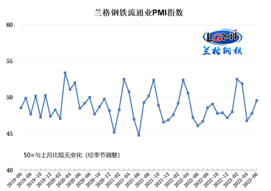 蘭格鋼鐵網(wǎng)統(tǒng)計(jì)發(fā)布的2023年6月份鋼鐵流通業(yè)PMI總指數(shù)為49.6%,比上月上升1.8個(gè)百分點(diǎn),在收縮區(qū)間內(nèi)繼續(xù)回升。從分類指數(shù)看,構(gòu)成鋼鐵流通業(yè)PMI的10個(gè)分類指數(shù)6升3降1平,其中銷售量、銷售價(jià)格、總訂單量、采購成本、走勢(shì)判斷和采購意愿6項(xiàng)指數(shù)上升,到貨速度、庫存水平和融資環(huán)境3項(xiàng)指數(shù)下降,企業(yè)雇員1項(xiàng)指數(shù)持平。