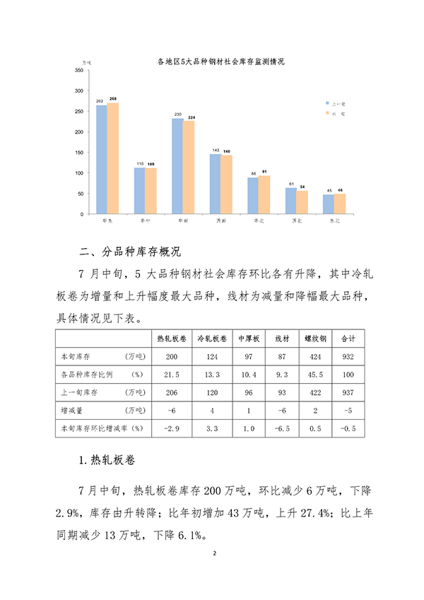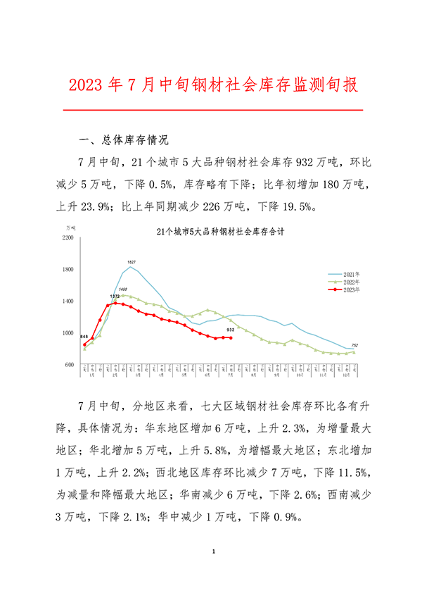 中鋼協:7月中旬鋼材社會庫存932萬噸 環(huán)比下降0.5%