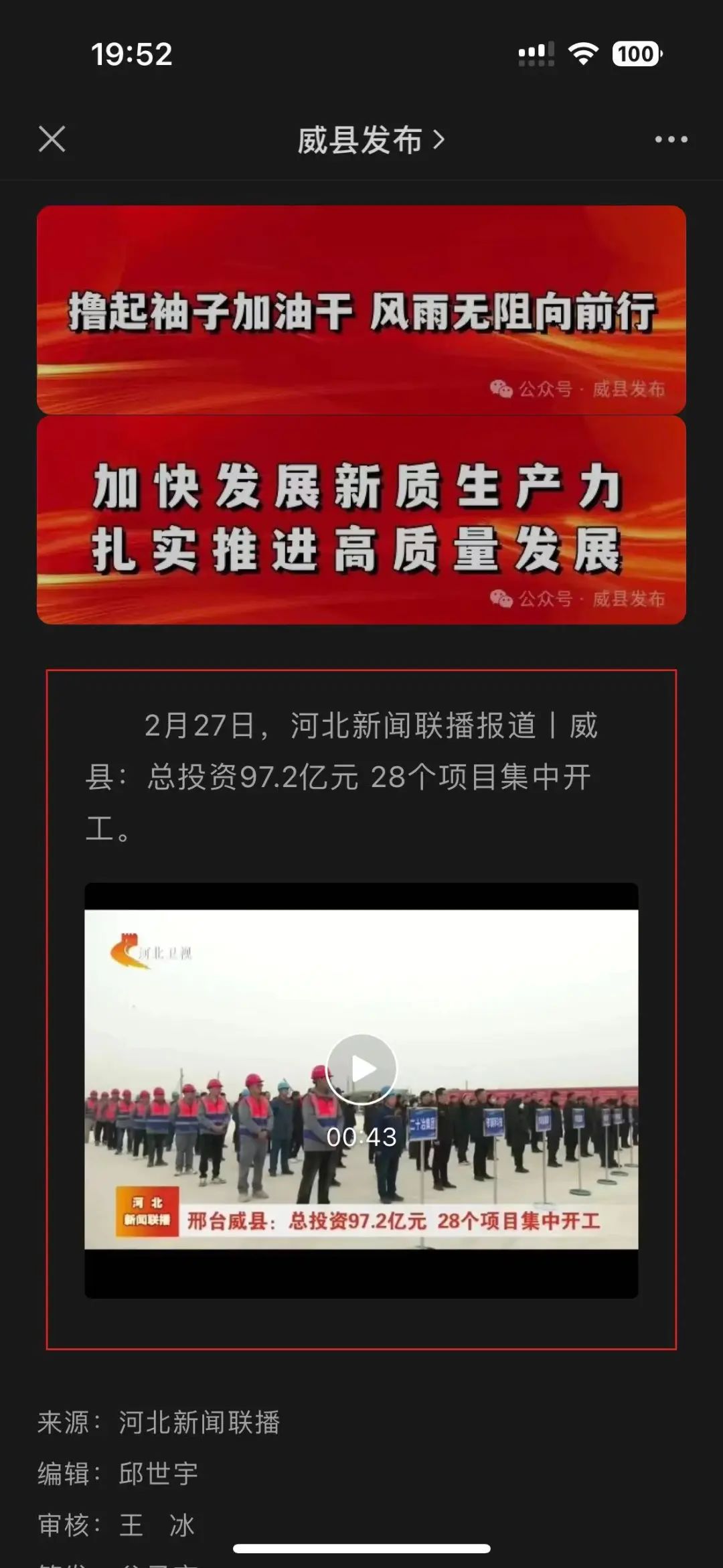 河北威縣:2024年一季度項目集中開工總投資97.2億元