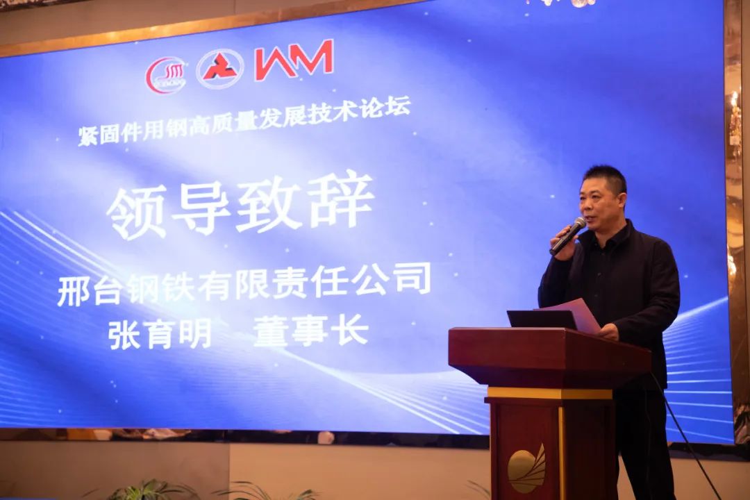 邢鋼公司黨委書記、董事長張育明致辭,他表示,此次論壇是共商緊固件用鋼高質(zhì)量發(fā)展,緊固件產(chǎn)業(yè)鏈上下游企業(yè)締結(jié)友誼、協(xié)商合作、謀劃共贏的盛會。邢鋼能夠為本次論壇提供支持,倍感榮幸。