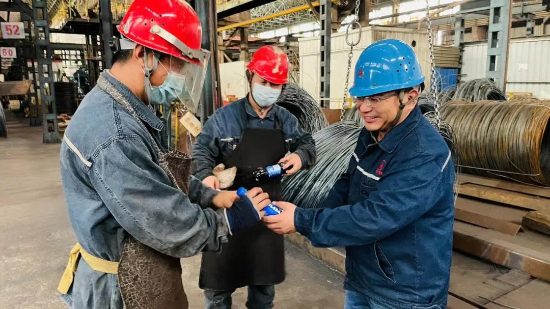 入夏以來(lái),持續(xù)出現(xiàn)高溫天氣,炎炎夏日,揮汗如雨。為保障一線員工的身體健康,近日,由線材廠廠長(zhǎng)孔令波帶隊(duì)到生產(chǎn)線高溫崗位為員工送清涼,為堅(jiān)守在生產(chǎn)一線員工送去了飲料、西瓜等防暑降溫食品,并對(duì)員工工作、身體情況進(jìn)行慰問(wèn)。