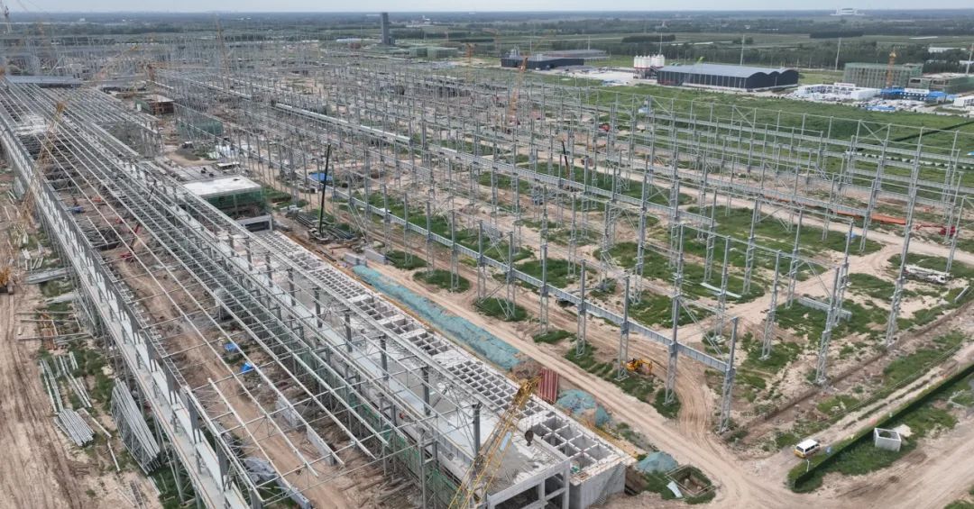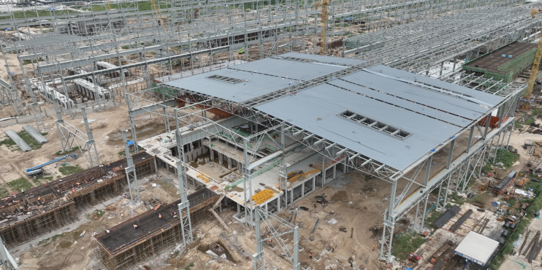 走在項(xiàng)目現(xiàn)場,隨處可見矗立的鋼結(jié)構(gòu)和封頂?shù)慕ㄖ黧w。項(xiàng)目主要部分從西向東分別是煉鐵區(qū)域、煉鋼區(qū)域和軋鋼區(qū)域,項(xiàng)目鋼結(jié)構(gòu)工程已全面鋪開。