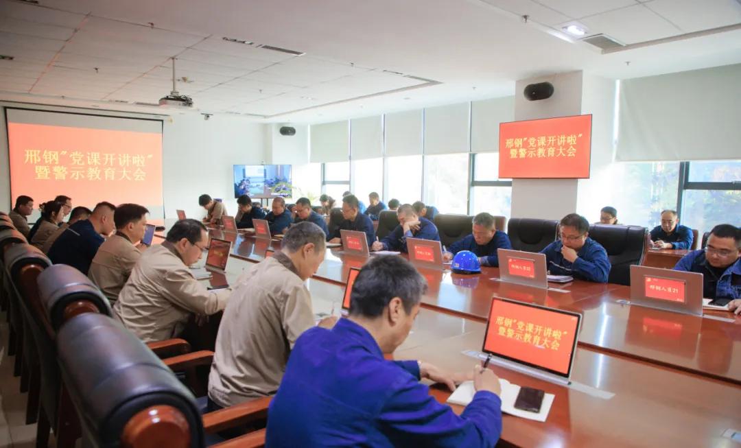 4月25日,邢鋼黨委在辦公樓207會議室,召開黨委擴大會,安排“黨課開講啦”系列活動。會議由公司黨委副書記、副總經(jīng)理、工會主席魏利剛主持,公司黨委、黨總支、黨支部三級組織書記及中高層管理人員、主任級和副主任級專業(yè)職務人員近百人參加會議;駐威縣新廠相關人員在威縣視頻觀看。